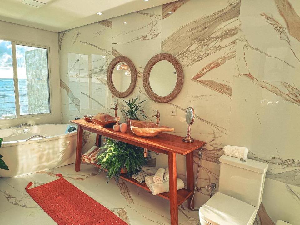 Com uma visão maravilhosa, esta suíte localizada no primeiro andar de frente para o mar de Japaratinga, irá deixar memórias. Com uma belíssima piscina na sacada onde você tomará banho de cascata tendo o mar a seus pés. Com todas as comodidades necessárias ao seu conforto e prazer.